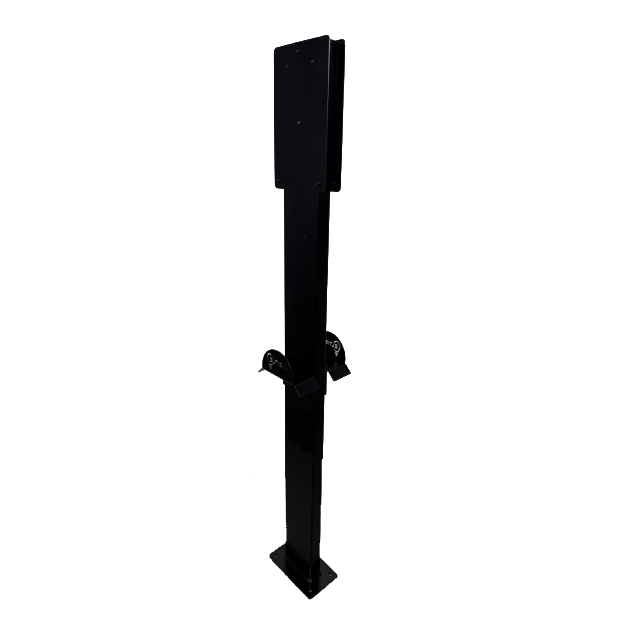 Dvipusis Teltonika įkrovimo stotelės stovas – kokybiškas ir patikimas sprendimas elektromobilių įkrovimo stotelėms montuoti. Ant vieno stovo galima sumontuoti dvi Teltonika įkrovimo stoteles – po vieną kiekvienoje pusėje. Stovas pagamintas iš patvaraus, oro sąlygoms atsparaus metalo, todėl puikiai tinka tiek viešoms, tiek privačioms vietoms. Integruoti du kištukiniai lizdai ir du kabelių laikikliai suteikia dar daugiau funkcionalumo ir patogumo naudojant kasdien.