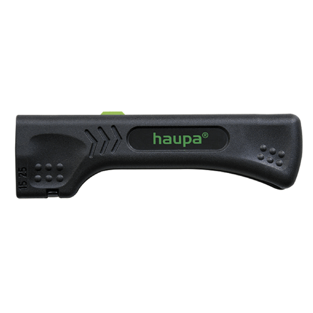 HAUPA 200050 kabelių izoliacijos nuėmėjas skirtas apvalių kabelių Ø 4–15 mm ir plokščių kabelių iki 15 mm pločio izoliacijos nuėmimui. Tinka 1,5–2,5 mm² viengysliams laidams, leidžia atlikti išilginį pjūvį ir užtikrina tikslų darbą elektros montavimo metu.