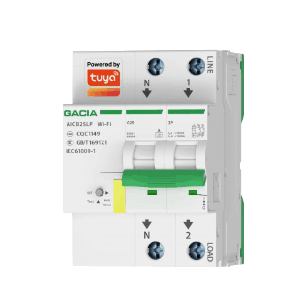 AICB2 serijos išmanus automatinis jungiklis – tai pažangus IoT sprendimas, skirtas elektros tinklo apsaugai, stebėsenai ir nuotoliniam valdymui. Įrenginys leidžia realiu laiku stebėti įtampą, srovę ir energijos suvartojimą, taip pat nuotoliniu būdu valdyti elektros grandines per WiFi ir Bluetooth (BLE) naudojant Tuya platformą.
