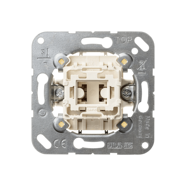 JUNG kryžminis perjungiklis 507 U – patikimas sprendimas apšvietimo valdymui iš trijų ar daugiau vietų. Skirtas 10 AX, 250 V~ apkrovai, turi patogius gnybtus standiems laidams iki 2,5 mm². Modelis komplektuojamas su auselėmis ir varžtais, todėl montavimas į standartines instaliacines dėžutes yra stabilus ir saugus.
