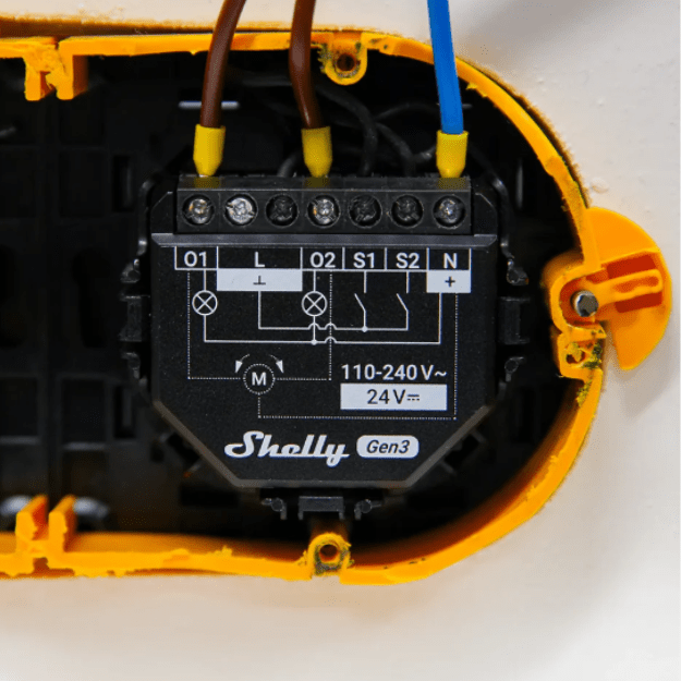Shelly 2PM Gen3 2 kanalų variklio ir žaliuzių valdymo relė su galios matavimu (WiFi + Bluetooth, 2x10A)